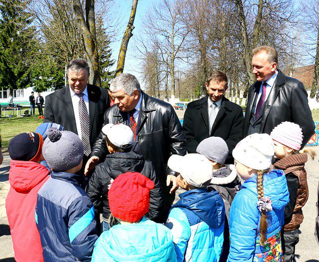 По окончании митинга-реквиема Геннадий Лавренков пообщался с маленькими жителями агрогородка Тимоново.