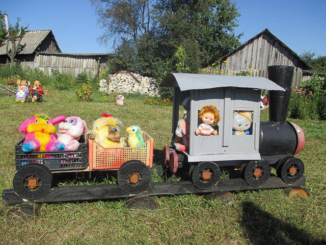 Детская игровая площадка — настоящий сказочный уголок, где любят играться не только внуки Блохиных, но и соседские дети, а также малыши, приезжающие в деревню с родителями во время летних отпусков. В оформлении дизайна — труд всех взрослых членов семьи. Как уверяет Людмила, без мастеровитых рук хозяина, Ильи Михайловича, и зятя Дмитрия Шведова, специалиста ПМК-256, заниматься благоустройством было бы сложнее. Они проявляют фантазию и смекалку в изготовлении поделок и обустройстве дворовой территории. Каких только фигурок, раскрашенных в веселые яркие краски, здесь нет! Паровозик, качели, аисты, лебеди, лошадки, черепашки, собачки, ежики, кораблики, сказочные персонажи, плетеный заборчик, мельница … Причем сделано все без ущерба для семейного бюджета — из всего того, что могло быть выброшено на свалку: деревянных отходов, старых жестянок, покрышек, пластика, посуды…