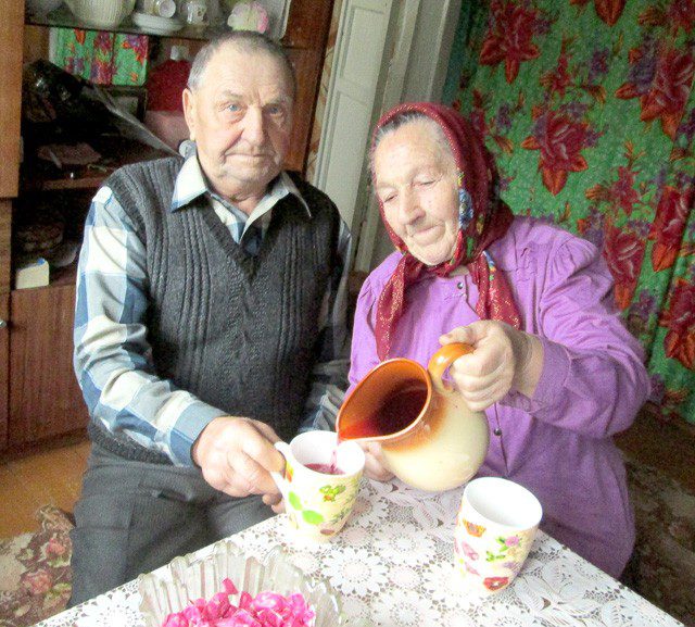 Пошел прицепщиком на тракторный агрегат в Милославичскую МТС. Сколько тракторист, столько и я в поле был. Уставал крепко, силенок-то тогда у меня маловато было. Ну да это все ладно, главное — хлеб, а точнее — зерно за работу давали. Уже семье полегче. Задумал выучиться на механизатора. В Мстиславское училище все брать не хотели, аргументировали, мол, маловат. Уговорил кое-как. Отучился и пришел в колхоз. В 1955 году в армию на три года призвали. После армии встретил свою будущую супругу Татьяну Михайловну. Она у меня тоже натерпелась. Ее мама трех сирот, своих внучек годовала. Сложно было. Так что пришлось Татьяне после 7 классов идти в колхоз. А через пару лет устроилась на резиновый завод в Кричев. Каждую неделю на выходные пешком ходила домой в Дорошковку, это Шумячский район. Представьте себе: в любое время года, в любую погоду пешком 18 километров. Придет матери денег даст — на отрез материи какой или на обувь детям. А она ей — сумку с собой соберет, сала, яиц положит. Так и жили, друг другу помогая. После свадьбы первое время мы у моей матери быт налаживали, а потом строиться начали. Дом дался тяжело — в то время стройматериалов было не достать. Экономили на всем, чтобы побыстрее въехать в свое жилье. Худо-бедно, но через два года справили новоселье. У нас трое деток родилось. Супруга первое время с ними все была, а потом пошла в колхоз разнорабочей. Она день на работе, я — почти сутки. А сыновья и дочь сами себя смотрели, рано самостоятельными стали. Работать я всегда старался на совесть. Стыдно было — вполсилы. Да и что скрывать, материальное поощрение, которое полагалось за трудовые подвиги, давало стимул. Дома-то трое ребят, их кормить, одевать надо. У нас всегда хозяйство большое было. Сейчас сам удивляюсь, как мы справлялись, как время на все находили. Меня с женой всю жизнь преследовали воспоминания о нашем голодном детстве, поэтому и старались все делать для того, чтобы дети ни в чем не нуждались. Где-то в середине 70-х купили машину новую ВАЗ-2. Радости было! Стали собирать на Волгу, но потом деньги обесценились. Так что на Волге поездить не довелось. Я же еще был членом ревизионной комиссии Коммунистической партии Белоруссии. Практически каждый месяц ездил в Минск на заседания, совещания. Гордости, что именно я представляю наш регион, не было, скорее ответственность была, обязательность и больше требований к себе, к своей работе, к своему поведению. Да, время было непростое, но скажу я вам, очень интересное. Сегодня тоже живем, не жалуемся. Дети, внуки приезжают, правнуков привозят понянчить. Помогают, когда надо. Дочь Тамара так каждый день навещает. Сейчас у нас маленький трактор, сеялка. Здоровье уже не то, что в молодости, работать на земле тяжело стало, вот техника нам в помощь. Есть еще пасека небольшая. Однажды зять привез ульи, говорит, мол, присмотрите. Я ему — что я с этими пчелами делать буду, я же ничего в этом не понимаю. Ответ обнадежил — они вас сами всему научат, не волнуйтесь. Ну и что — научили и даже подлечили. Правда, благодаря пчелам и новому увлечению, я себя лучше чувствовать стал. Сил придают — забота и работа. Без дела сидеть нельзя — апатия наступает. А к жизни в любом возрасте должен быть интерес.