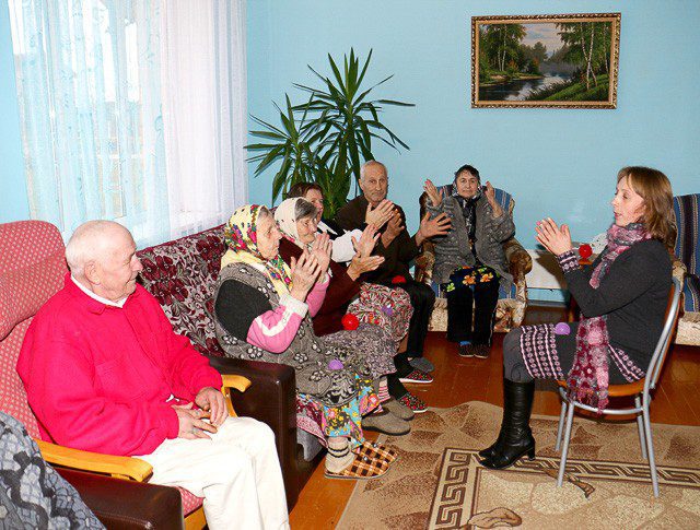 фитнес-минутку. Пожилые люди занимаются с удовольствием. Ну, а сохранить бодрость им помогает социальный работник Ирина Троянова.