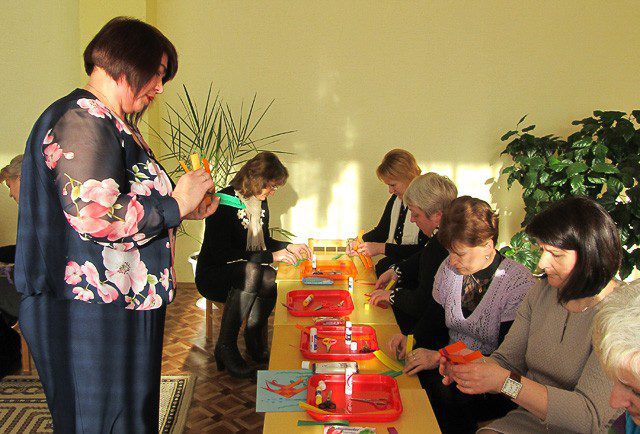 О занятиях ручным ткачеством с дошколятами в детском саду «Светлячок» рассказала воспитатель сада Жанна Валентиновна Карасева. И она вместе с заместителем заведующего по основной деятельности Раисой Ивановной Земляковой провели мастер-классы, на которых рассказали и показали коллегам, как с помощью ниток или бумаги сделать простые, но красивые вещи, причем, такие, которые можно мастерить вместе с детьми.