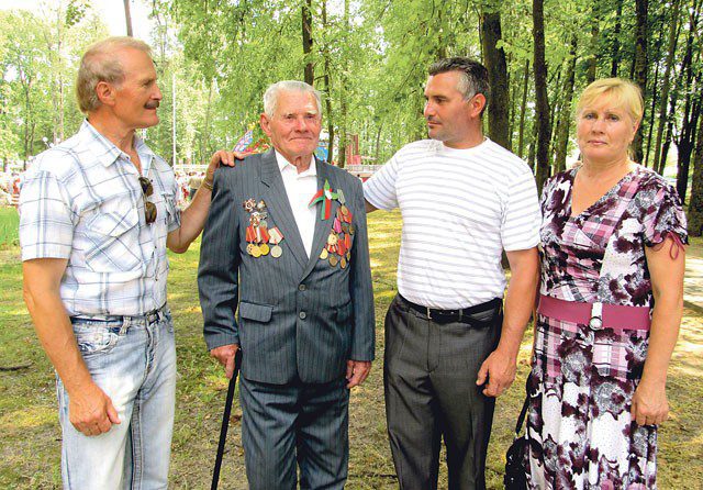 Мы встретились в городском парке на праздновании Дня Независимости Республики Беларусь. Вместе с ветераном Великой Отечественной войны Владимиром Титовичем Турнуевым в парке были его дочь Антонина Владимировна, зять Александр Иванович Пукилов и внук Роман. Сделали снимок на память, поговорили.
