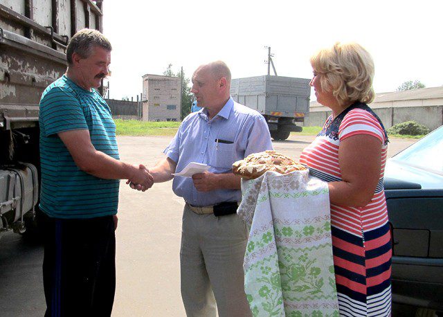На минувшей неделе была отвезена первая тысяча тонн зерна от комбайнов. Первого водителя-тысячника чествовали в одном из передовых хозяйств — филиале «Приграничный» ОАО «Климовичский КХП».