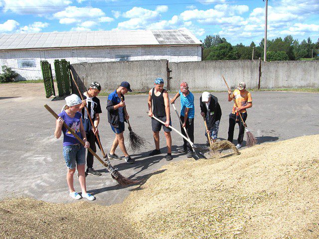 Сельскохозяйственный студенческий отряд Климовичского аграрного колледжа в саду занят, в основном, сбором фруктов. Куратор — преподаватель Виктор Амеличев. (Кстати, Виктор и сам прежде окончил наш колледж, и тоже работал в студотрядах). В отряде 20 человек. Работают семь часов с перерывом на обед. Обедают, кстати, в столовой ЛВЗ, куда их возит автобус колледжа (на этом же автобусе студентов доставляют к саду и увозят обратно).