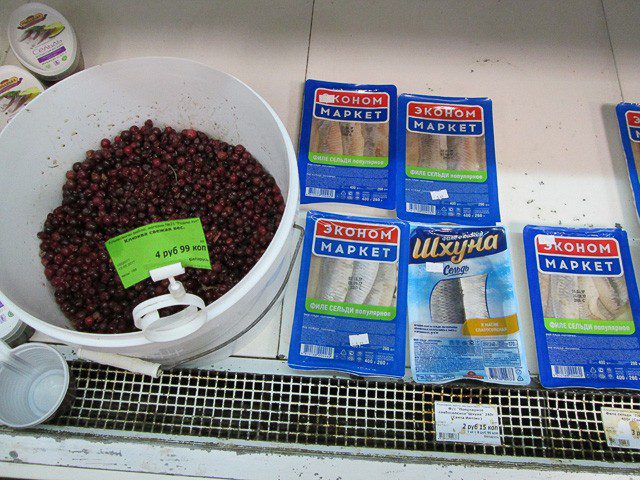 На некоторые продукты, в частности, на колбаски сырые «Заречные новые», вареный рулет «Селянский», свежую клюкву продавцы магазина не смогли предоставить работникам санитарной службы маркировку предприятия-изготовителя. Плюс к этому в «Квартале» ни на одном колбасном и мясном изделии помощники врача-гигиениста не заметили этикетку о дате и времени вскрытия упаковки. Следующее выявленное нарушение — несоблюдение товарного соседства, а именно — свежей клюквы и упакованной соленой рыбы — по сравнению с предыдущими нарушениями показалось нам цветочками. Куда ему до вышеописанных «ягодок»!