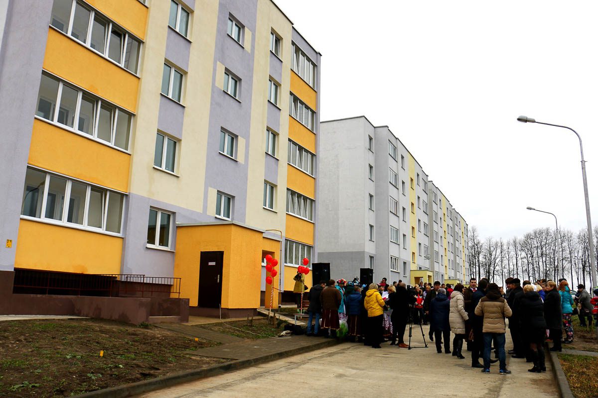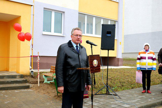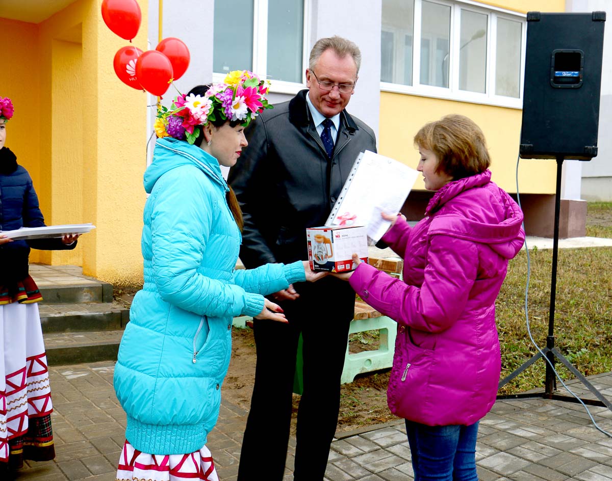 В новом микрорайоне по ул. Ленина благодаря стараниям специалистов ПМК-256 появился новый дом. Большинство новоселов — наши земляки. Десять квартир предоставлены бесплатно для проживания наиболее уязвимой категории граждан из числа сирот. Новую прописку получили несколько молодых специалистов, а также граждан, состоящих на учете нуждающихся в улучшении жилищных условий. Об этом в своем выступлении 4 ноября говорил председатель райисполкома Василий Захаренко. Василий Алексеевич открыл торжественную часть мероприятия, посвященную вводу в эксплуатацию жилого дома.