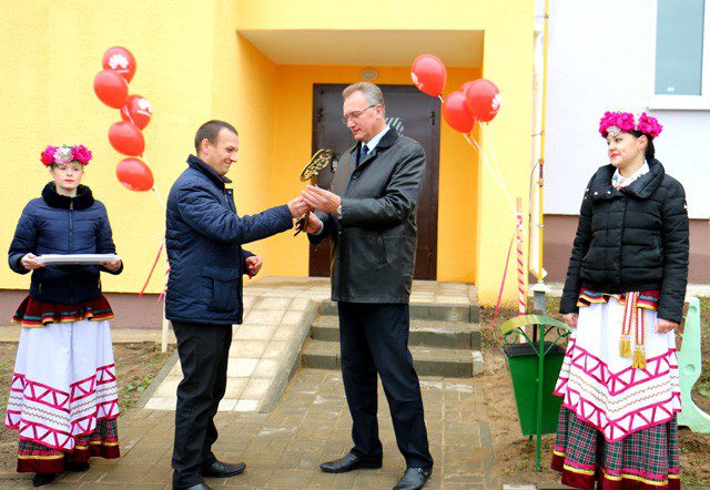 Василий Захаренко вручил новоселам ключи от квартир. Кроме того, подарки для горожан подготовили районные организации РОО «Белая Русь» и Белорусского общества Красного Креста.