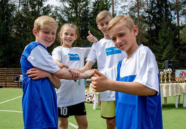 Минск, 3 мая 2018 года. Белорусские школьники, ставшие победителями отборочных для участия в Международной детской социальной программе «Футбол для дружбы» провели презентацию проекта на Международной специализированной выставки «СМІ ў Беларусі».