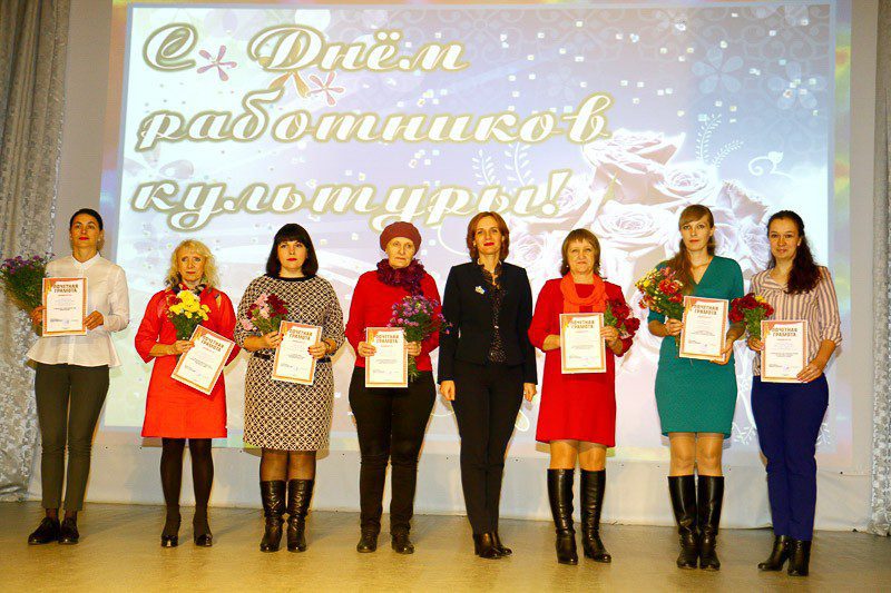 Слова поздравлений звучали из уст начальника отдела идеологической работы, культуры и по делам молодежи райисполкома Виктории Прокофьевой. Почетной грамотой отдела были награждены Татьяна Сапожкова, Таиса Иванова, Татьяна Беспалая, Нина Гурбович, Марина Шилова, Анна Кирпиченко, Кристина Старовойтова, Наталья Галковская, Анжела Астапенко. Благодарность объявлена Ольге Максимович, Марине Гребенюковой, Светлане Пролыгиной, Валентине Бураковой, Ольге Башкардиной, Оксане Гурбович, Наталье Исаковой, Валентине Подобед, Валентине Игнатьевой, Виктории Петрашиной.