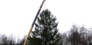 Главную елку района установили на площади 50 лет Великого Октября. Фотофакт
