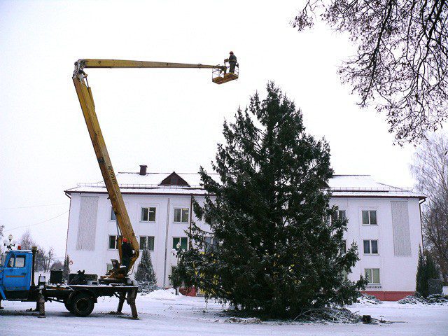 Главную елку района привезли и уже установили на площади возле райисполкома работники Климовичского УКП «Коммунальник».