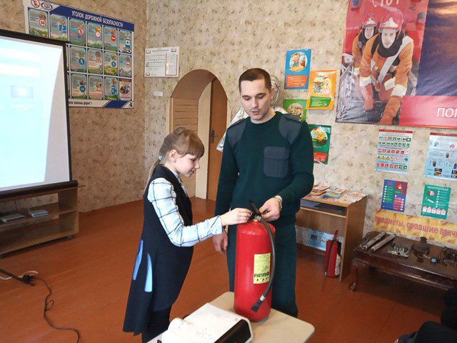 Также с учащимися ГУО «Средняя школа №3» в кабинете ОБЖ спасатели провели занятие по основам безопасности жизнедеятельности.