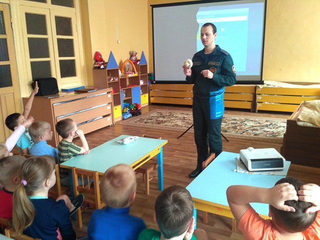 На занятии ребята изучили номера телефонов экстренных служб и узнали, что можно делать дома, а что нельзя. Ребята посмотрели обучающие мультфильмы, благодаря которым узнали правила эвакуации, а затем опробовали свои знания на практике. За правильные ответы все детишки получили памятные подарки.