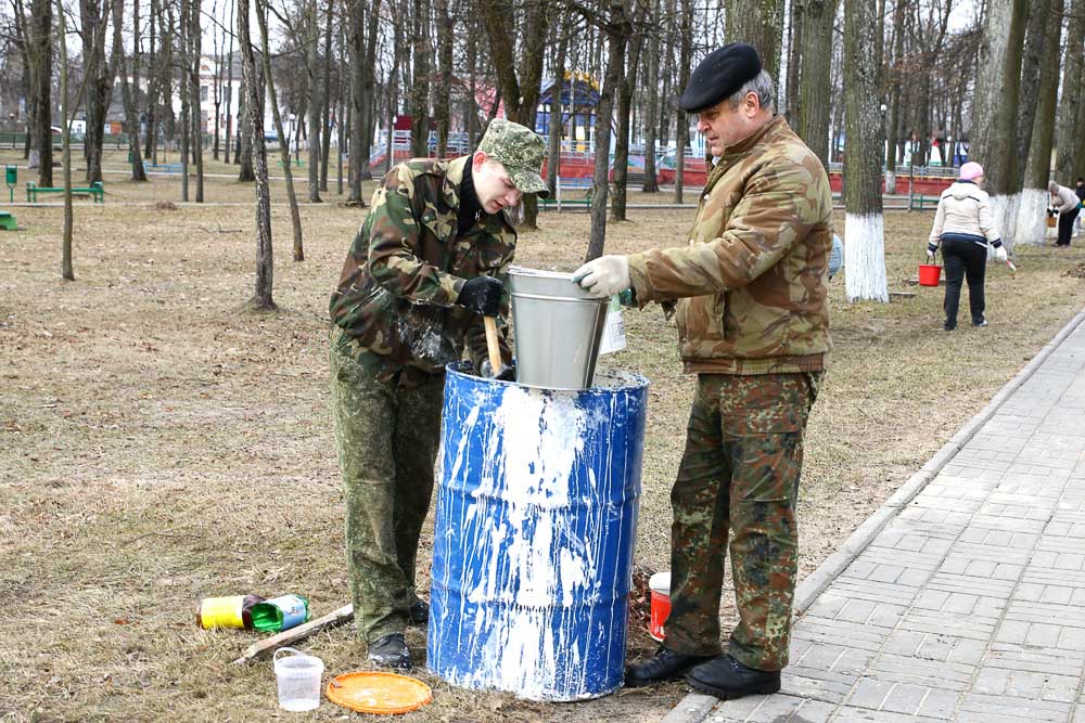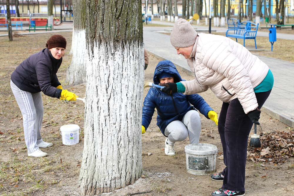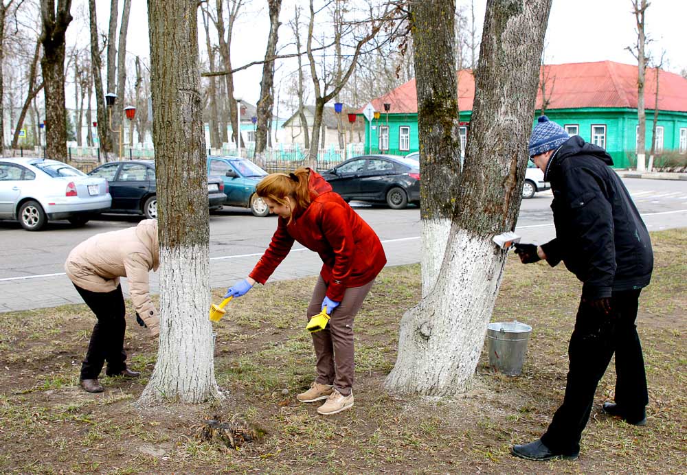 Теплый весенний день поспособствовал хорошей работе климовчан, которые организовали 30 марта субботник. Представители районного исполнительного комитета, учреждений культуры, редакции занимались побелкой деревьев на площади 50 лет Великого Октября, по улице Советской, в городском парке.