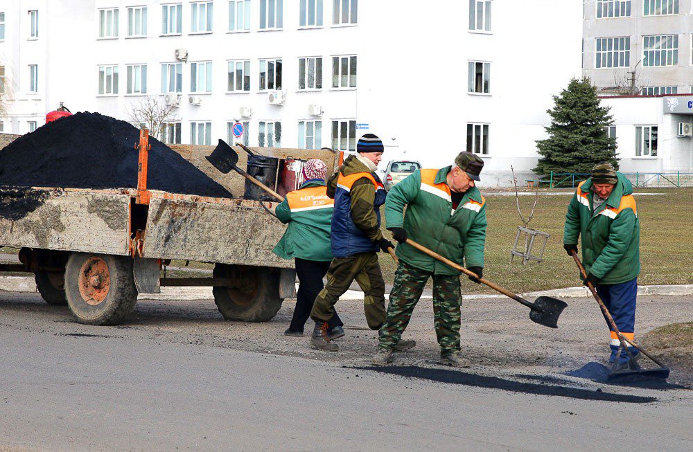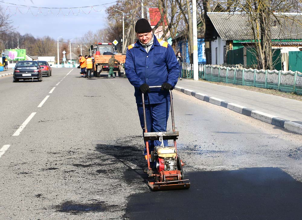 Рейдовая группа застала за работой и специалистов ДРСУ-172, которые занимались ямочным ремонтом дороги по улице Коммунистическая в райцентре и участка автодороги Климовичи — Майский.