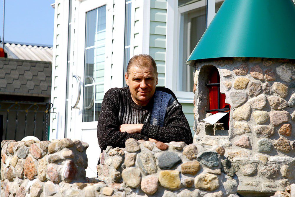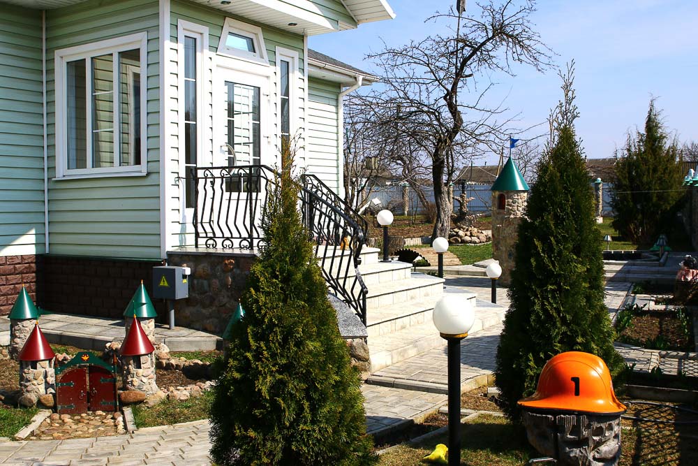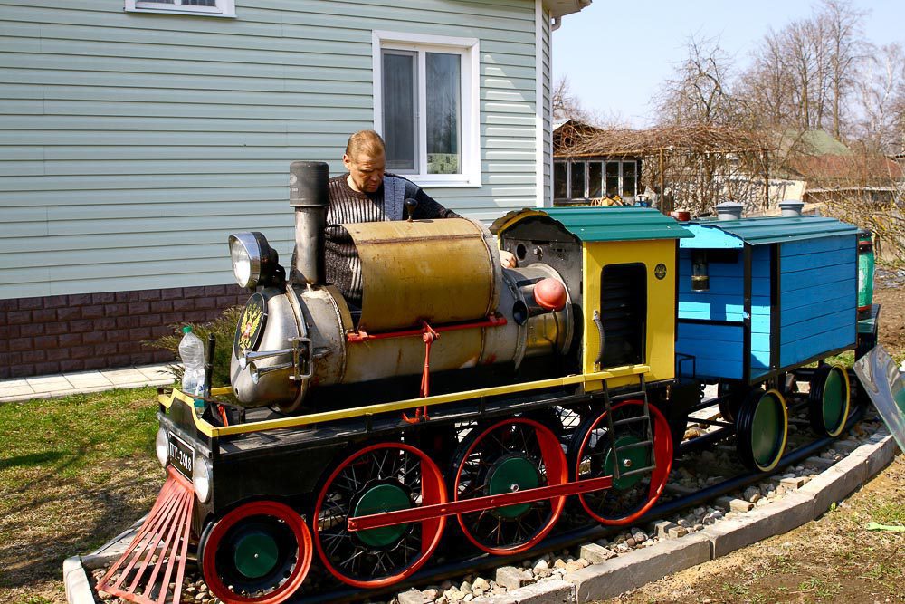 — Стройку мы затеяли лет 12 назад, — вспоминает Виктор Александрович. — До этого купили участок со старой хатой. Ее, конечно, пришлось разбирать. Проект рисовали сами. Практически всю работу выполняли также самостоятельно. Зарплаты у нас с супругой скромные. Я работаю водителем в райЦГЭ, а она — секретарем в суде. Да и с другой стороны, если хочешь, чтобы было хорошо и красиво — делай сам. Вот так постепенно на участке в 11 соток и появились двухэтажный дом, хозпостройки, забор из камня, миниатюрные водопад с прудом. Кстати, тротуарную плитку мастеровитый хозяин также сделал своими руками. Интересной получилась зона отдыха, где мангал установлен на мультяшном паровозе с вагончиками. Много разных архитектурных форм. По вечерам территорию на участке украшают светодиодные фонари, их — 70 штук.