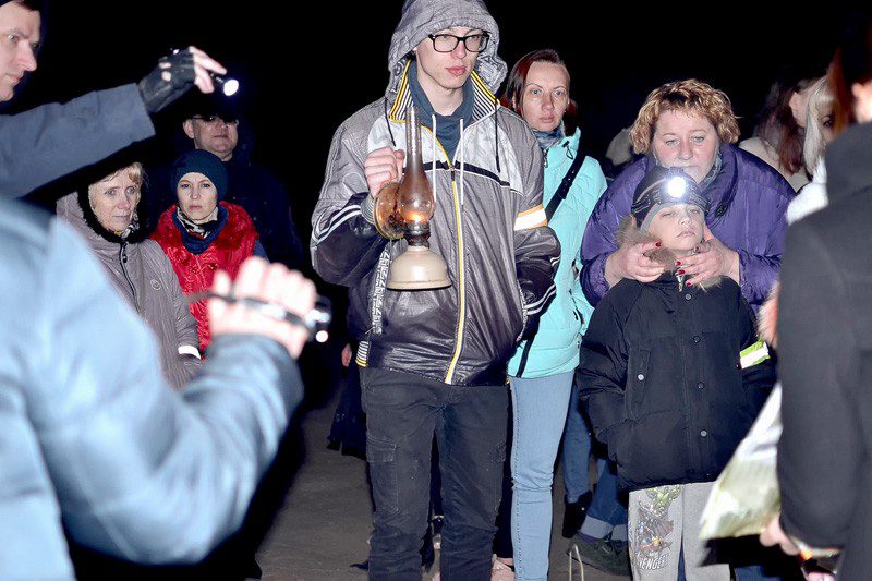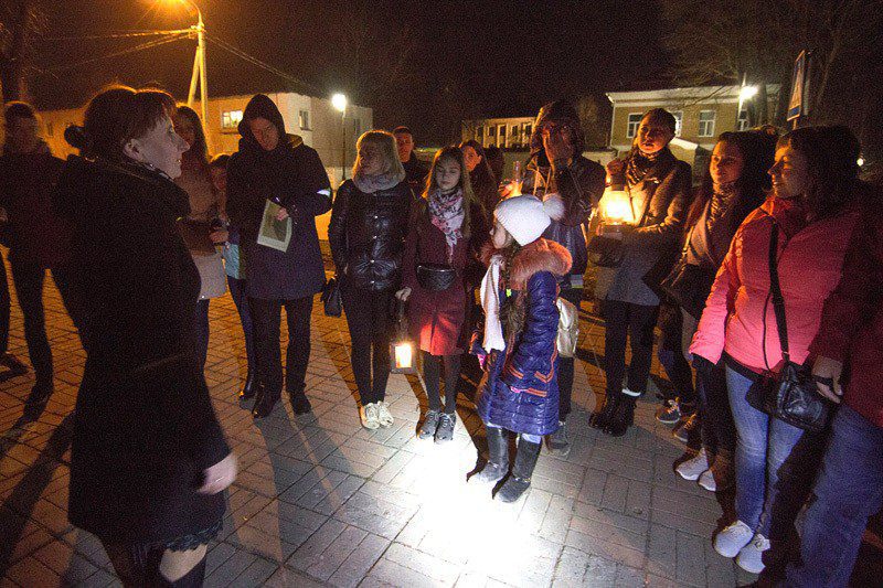 Само название уже говорит за себя. Первым сюрпризом стало время мероприятия — 22.00. В парке, на площадке амфитеатра, где началась экскурсия, Дарья Эверс рассказала о керосиновых лампах и фонарях, со своими помощниками Павлом Давыдовым, Виталием Потапковым и Владиславом Митичевым зажгла 9 фонарей. Экскурсанты познакомились с принципом работы шахтерской лампы, уличных и железнодорожных фонарей, ламп с отражателем, переносным свечным фонарем, корпус которого изготовлен из дерева. Желающих пронести по ночному городу раритеты было гораздо больше количества фонарей. Горожан собралось немало — 80 человек.
