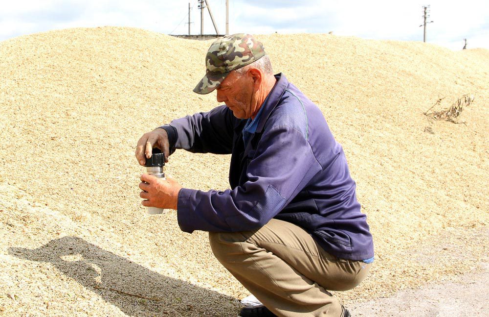На сушилке зерно дорабатывают операторы Олег Игнатьев, Сергей Блых, Сергей Семченко, Роман Скворцов.
