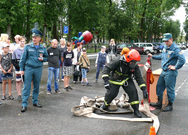 Нужно сказать, что посмотреть на происходившее пришло немало климовчан. Спасатели сами вначале продемонстрировали свое профессиональное мастерство, а затем предложили принять участие в мероприятии всем желающим: примерить защитную одежду и попробовать выполнить в ней некоторые элементы соревновательной программы.
