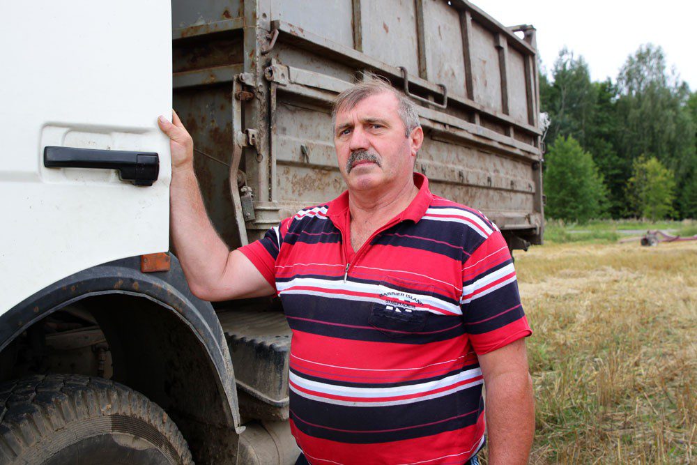 — На отвозке зерна от комбайнов заняты Александр Бамбизов, Виктор Иванекин, Владимир Стелькин и Геннадий Василенко. Время от времени к работе по перевозке хлеба привлекаются водители комбината хлебопродуктов, индивидуальные предприниматели.
