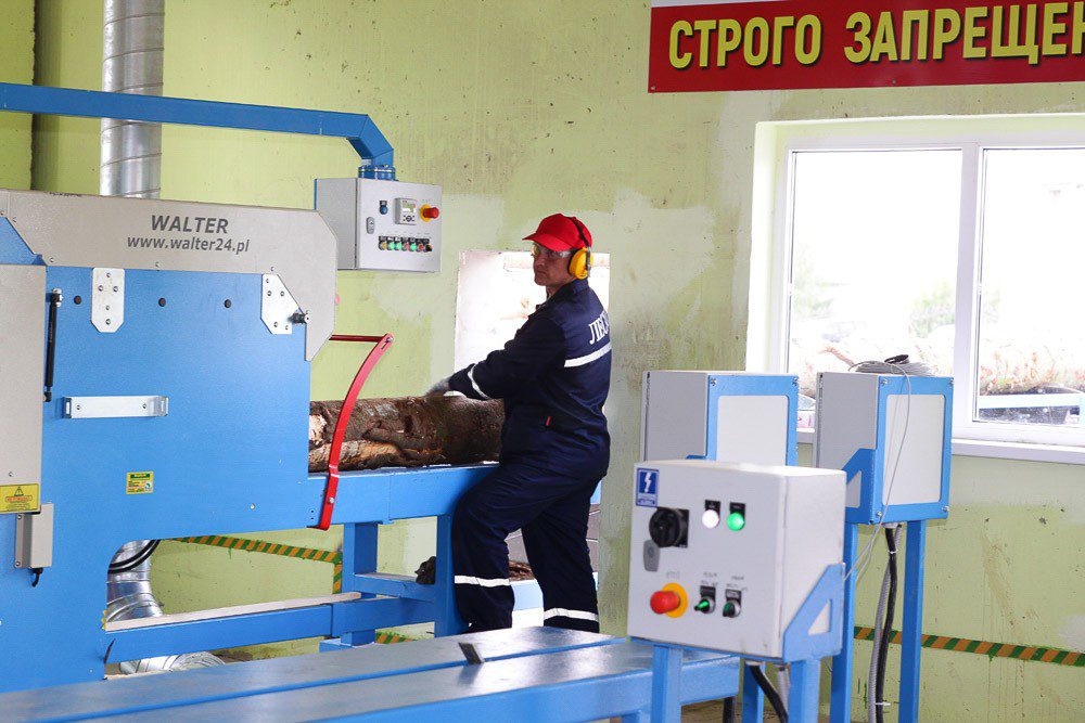 Технологическая лесопильная линия состоит из конвейера, штучной подачи бревен, брусовочного станка с кантователем и конвейером разделения горбыля и бруса, многопильных станков, оборудования для переработки горбыля, барабанной дробилки с ленточным транспортером. Произведенное в Польше оборудование способно переработать до 12,6 тысяч метров кубических продукции в год.