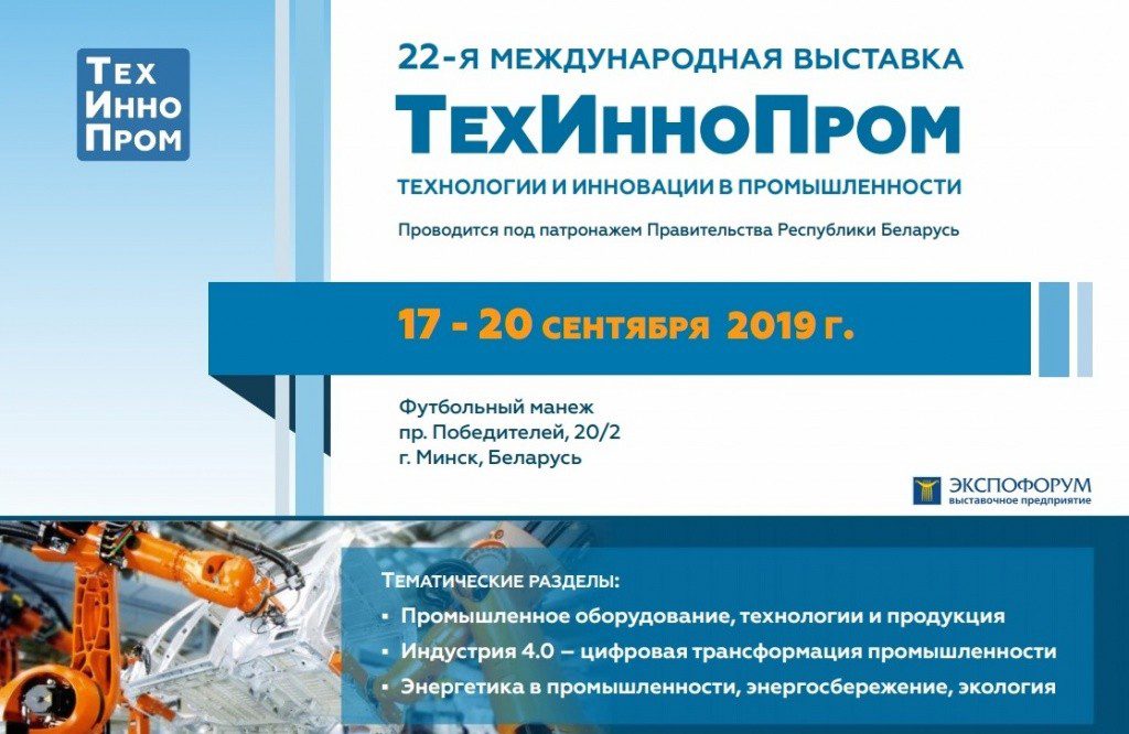 Белорусский промышленно-инвестиционный форум проходит в Минске 17-20 сентября 2019 года. Это один из крупнейших выставочных проектов в СНГ, который объединяет несколько международных специализированных выставок в области научно-технического развития и современных технологий — «ТехИнноПром», «Профсварка», «Химия. Нефть и газ», «Пластех». Во время мероприятия также пройдут белорусско-японский и белорусско-словацкий экономические форумы, индийско-белорусский деловой и технологический форум. Для ознакомления с экспортным потенциалом Беларуси и расширения сотрудничества участие в форуме запланировали делегации Германии, Венгрии, Индии, Кыргызстана, Молдовы, Польши, Португалии, Словакии, Украины, России.