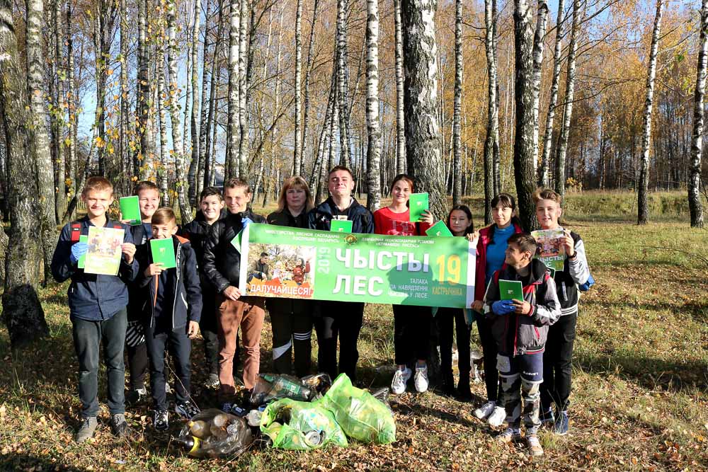Ребята из районной гимназии наводили порядок в городской роще возле озера, а учащиеся первой городской школы убирали рощу возле Евроопта в районе военкомата.