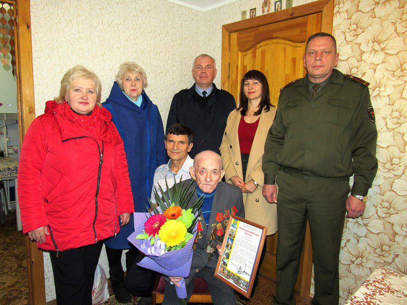 В кругу семьи юбиляру было вручено благодарственное письмо от председателя Климовичского райисполкома Леонида Засемчука. Военный комиссар вручил юбилейную медаль «100 год Узброеным Сілам Рэспублікі Беларусь».