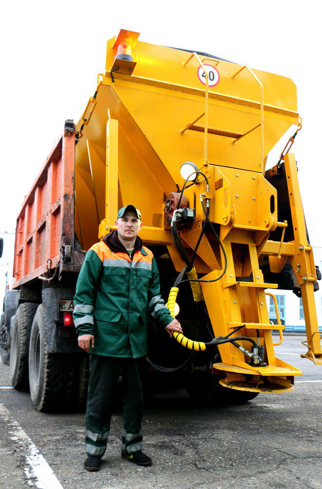 Переоборудовать 20-тонный МАЗ помогли на заводе в Фаниполе. Весь процесс занял около двух месяцев и обошелся в 18,5 тысячи рублей. Теперь машина способна забирать сразу 13,5 тонны песчано-соляной смеси, которой будет хватать на обработку около 30 километров дороги.