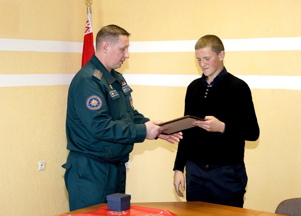14 ноября начальник Могилевского областного управления МЧС Республики Беларусь Сергей Демидов приехал в Климовичи. На встречу с ним в районный отдел по чрезвычайным ситуациям был приглашен Сергей Ковалев из агрогородка Малышковичи, спасший на пожаре своего земляка. Сергей Анатольевич поблагодарил юношу за проявленное мужество при спасении человека и вручил ему грамоту и ценный подарок.