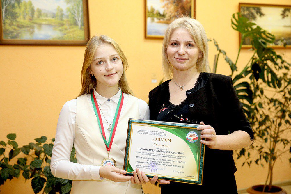 Учащаяся Климовичской районной гимназии Елизавета Чернобаева достойно представила нашу область и район на прошедшей недавно (28 октября — 2 ноября) в Могилеве олимпиаде школьников Союзного государства «Россия и Беларусь: историческая и духовная общность».