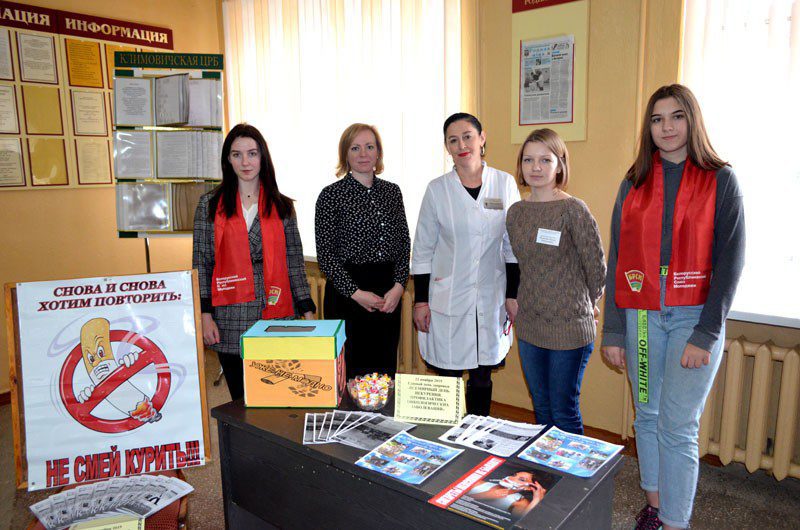 Организаторами акции выступили учреждения здравоохранения «Климовичская центральная районная больница», «Климовичский центр гигиены и эпидемиологии» и райком ОО «БРСМ». Место проведения мероприятия — районная поликлиника — было выбрано не случайно. Люди приходят сюда «за здоровьем», а никотин здоровья не добавляет. Вот и решили фельдшер-валеолог райЦГЭ Ирина Шашкова, инструктор-валеолог отделения профилактики ЦРБ Марина Васильева, активисты молодежной организации из аграрного колледжа вместе с первым секретарем райкома ОО «БРСМ» Алесей Котовой предложить курящим расстаться с вредной привычкой.