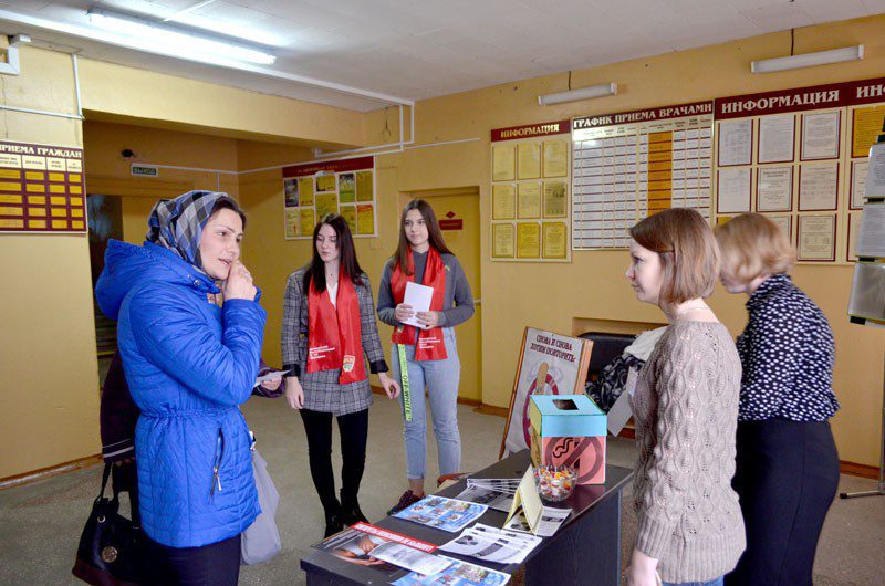 А еще медработники проводили беседы по профилактике онкозаболеваний с климовчанами, которые приходили в поликлинику, волонтеры раздавали тематические памятки и буклеты.