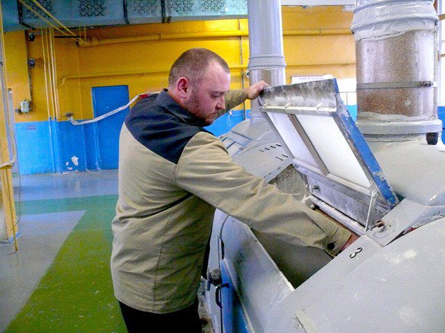 Десять лет отдал комбинату оператор процессов переработки зерна Александр Шутов. Сегодня вальцевой в числе лучших работников предприятия. На глазах специалиста происходит дробление зерна на разные фракции. И, в конечном итоге, из него получается мука.