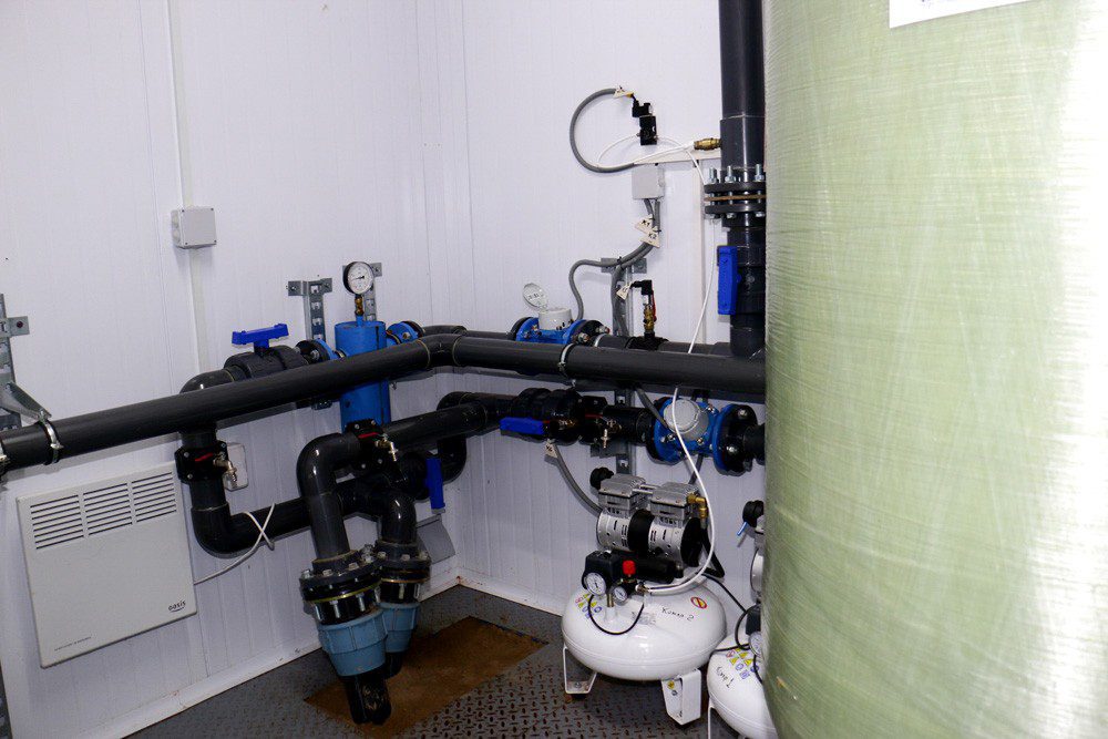 Сама станция — модуль контейнерного типа с технологическим оборудованием ООО «Амазон». Специалисты общества не только его производят, но и устанавливают. Благодаря насосам и фильтрам насыщенная воздухом вода, пройдя через систему очистки, расстается с металлом, который окисляется естественным способом. После очистки содержание железа в питьевой воде в агрогородке Тимоново составляет 0,1 — 0,12 мг/дм3. Норма — 0,3 мг/дм3.