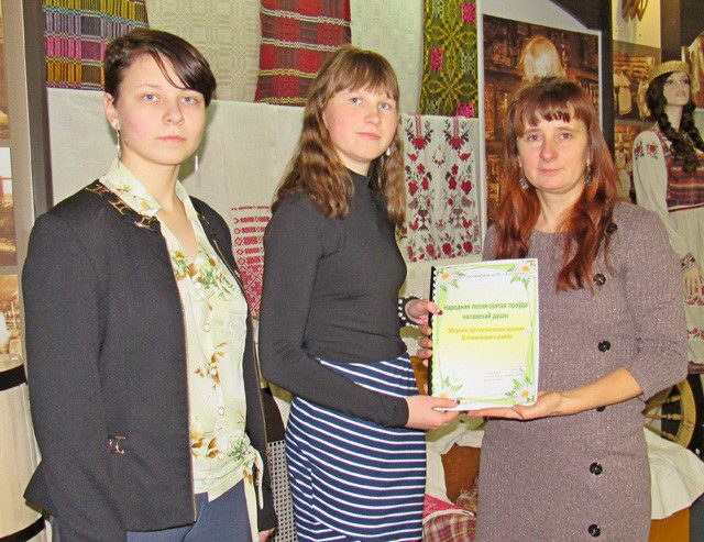 Учащиеся ГУО «Средняя школа №1 г. Климовичи» Оксана Кучук и Елизавета Саранчук подарили районному краеведческому музею сборник аутентичных песен Климовичского района «Народная песня — святая праўда чалавечай душы».