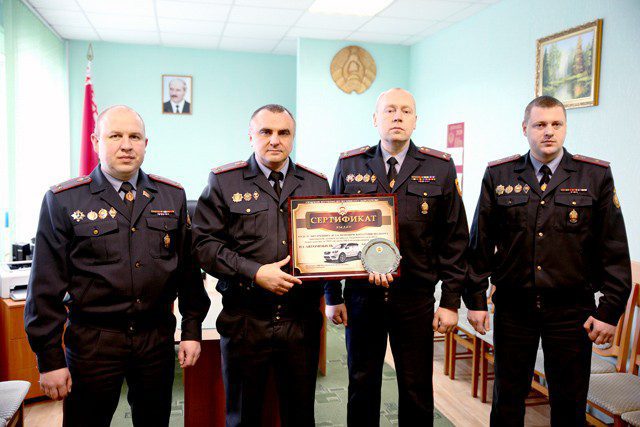 Районный отдел внутренних дел Климовичского райисполкома вновь признан победителем среди ОВД области второй категории. Начальник управления внутренних дел полковник милиции Игорь Щербаченя вручил начальнику Климовичского РОВД подполковнику милиции Станиславу Чуприну почетный приз, сертифкат на служебную машину и ключи от нее.