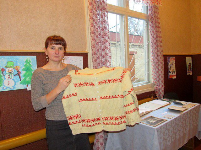Отдельное внимание заслуживает шерстяной костюм ручной работы, который подарила жительница г. Климовичи Нина Слепцова. Юбку и кофту Нина Васильевна бережно хранила 59 лет.