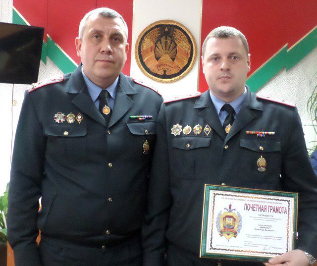 Почетной грамотой УВД облисполкома награжден начальник штаба ОВД майор милиции Александр Кириневич, грамотой УВД — старший инспектора ООПП ОВД подполковник милиции Юрий Чернобаев, объявлена благодарность начальника УВД начальнику отделения уголовного розыска майору милиции Виктору Минченко.