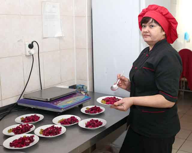 В том, что в столовой все на высоком уровне, как и в том, что в магазинах ТПУП «Ниваторг» собственная продукция всегда находит своих покупателей, большая заслуга технолога Елены Филимоновой. Ее работа в процессе приготовления пищи является первичной. Круг должностных обязанностей технолога весьма обширный. Со стороны кажется, что справиться со всем этим одному человеку практически невозможно. Судите сами. Елена Семеновна изучает и анализирует качество сырья, из которого будет изготавливаться продукция, рассчитывает количество продуктов для получения готовых блюд. Она составляет меню, распределяет обязанности между поварами, кондитером, полуфабрикатчиками и, естественно, контролирует ход работы. За качество готовых блюд также отвечает технолог. За ней же — внедрение новых и прогрессивных методик приготовления пищевой продукции с оптимизацией процессов под имеющиеся возможности предприятия. Изучая существующие нормативные документы, Елена Семеновна составляет новые рецептурные комбинации. При создании очередных блюд составляет их технологические карты, определяя точный состав и пищевую ценность продукции. Конечно же, она старается внедрить в производство что-то новое и полезное. Изучает спрос, как посетителей столовой, так и покупателей в магазинах. Кто-то из клиентов поинтересовался, к примеру, есть ли запеченная птица — пожалуйста, через некоторое время это блюдо уже в меню. В торговых же объектах ТПУП «Ниваторг» всегда имеется в продаже семь-восемь наименований полуфабрикатов собственного производства плюс различные булочные и кондитерские изделия. О голубцах и пельменях уже говорила, к ним еще нужно добавить биточки, котлеты, блинчики, колбасу деревенскую, булочки, пирожки с разными наполнителями, печенье и др. И в том, что это все высококачественное и вкусное, велика заслуга Елены Филимоновой. Ведь именно от ее добросовестности в определении качества исходных продуктов, соблюдения полноценной нормы их закладки зависит качество приготовленных блюд и полуфабрикатов.