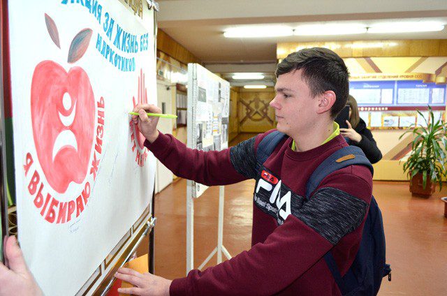 Активисты первичной организации ОО «БРСМ» УО «Климовичский государственный аграрный колледж» совместно с фельдшером-валеологом УЗ «Климовичский районный центр гигиены и эпидемиологии» Ириной Шашковой в преддверии Международного дня борьбы с наркоманией и незаконным оборотом наркотиков, который отмечается 1 марта, провели флэш-моб «Мы выбираем жизнь». Он проходил в фойе главного корпуса колледжа.