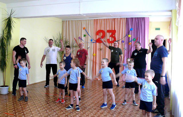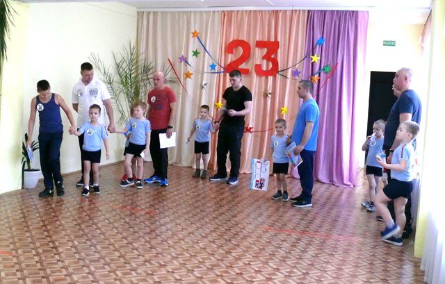 В ГУО «Ясли-сад № 6 «Светлячок» г. Климовичи» состоялся отличный спортивный праздник «Хочется мальчишкам в армии служить». Мальчики — воспитанники старшей группы — вместе со своими отцами в ходе этого мероприятия проходили различные эстафеты. Две спортивные команды «Танкисты» и «Десантники» соревновались в силе, ловкости, скорости, а порой и находчивости. Помимо этого маленьким и взрослым участникам нужно было продемонстрировать свои интеллектуальные способности в конкурсе «Мозговой штурм». Представители обеих команд по окончании спортивного праздника были награждены дипломами и подарками.