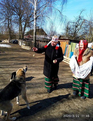 Мария Шлапакова испекла 40 «жаворонков». Первый «жаворонок» Мария Сергеевна по местному обычаю бросила в огонь. Считалось, что это действие задабривает солнце. А Тамара Кухарева покормила домашних животных свежей выпечкой. Затем жительницы населенного пункта, растянув скатерть, подбрасывали испеченных птиц в небо, призывая солнце светить теплее. Не обошлось без песен и плясок. Наигрывал женщинам на гармошке Василий Лиморов, а Николай Шаройко умело играл на бубне.