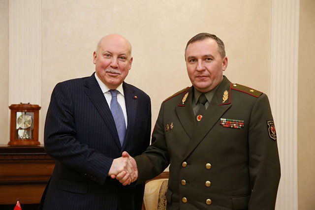 В Министерстве обороны Беларуси состоялась встреча главы оборонного ведомства генерал-майора Виктора Хренина с Чрезвычайным и Полномочным Послом Российской Федерации в Республике Беларусь Дмитрием Мезенцевым, сообщает пресс-служба.