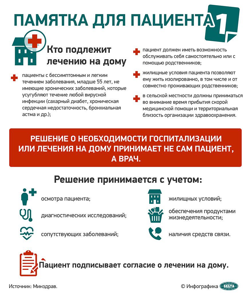 Решение о необходимости госпитализации или лечения на дому принимает не сам пациент, а врач.