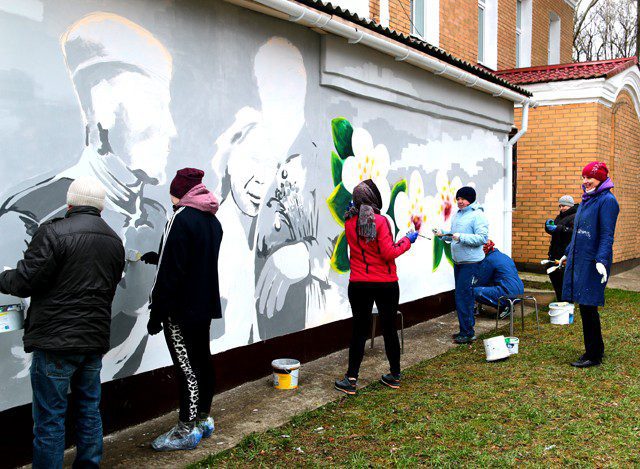 В нашем городе появится новый арт-объект, приуроченный к 75-летию Победы в Великой Отечественной войне. К созданию художественной росписи на стене хозпостройки, которая примыкает к зданию редакции районной газеты, приступили учителя двух детских школ изобразительных искусств района. Мурал назовут «Беларусь помнит».