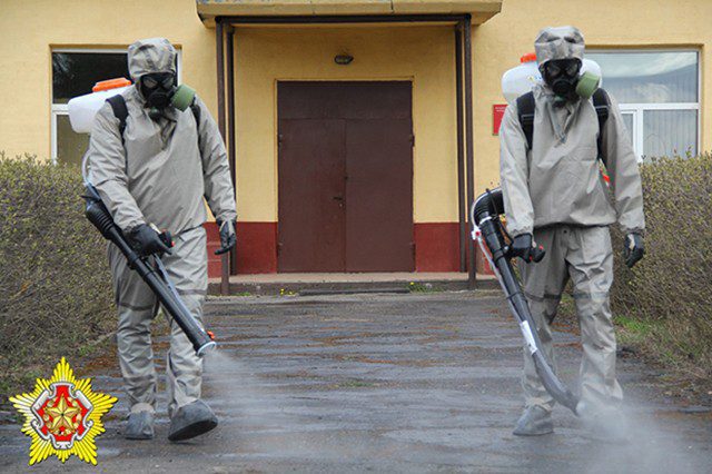 По словам начальника войск радиационной, химической и биологической защиты Вооруженных Сил Вячеслава Старкова, в настоящее время завершена подготовка личного состава, вооружения и специальной техники войск радиационной, химической и биологической защиты к выполнению задач по дезинфекции. Сводный батальон, который сформирован на базе 8-й бригады радиационной, химической и биологической защиты, будет обрабатывать объекты Министерства здравоохранения и промышленности, дороги, технику.