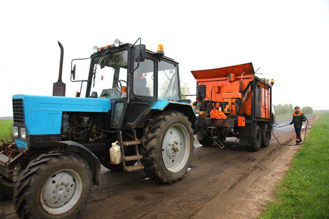Кстати, в этот же день специалисты ДРСУ-172 ремонтировали участок автодороги протяженностью 5 километров, ведущий к Осмоловичам, где работами руководила мастер Галина Маргелова.