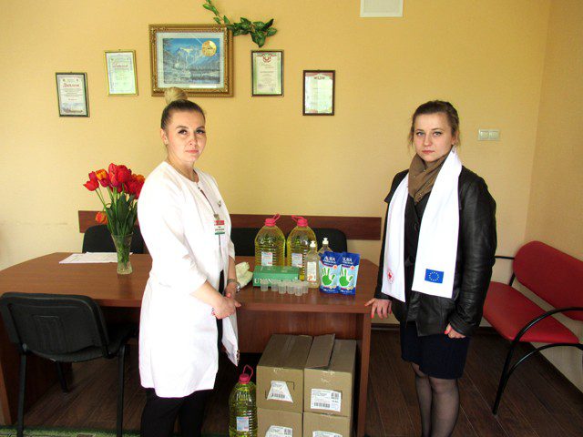 Председатель Климовичской районной организации Белорусского общества Красного Креста Анна Петровская передала УЗ «Климовичская центральная районная больница» дезинфицирующие средства, маски, перчатки, жидкое мыло, емкости для сбора анализов.