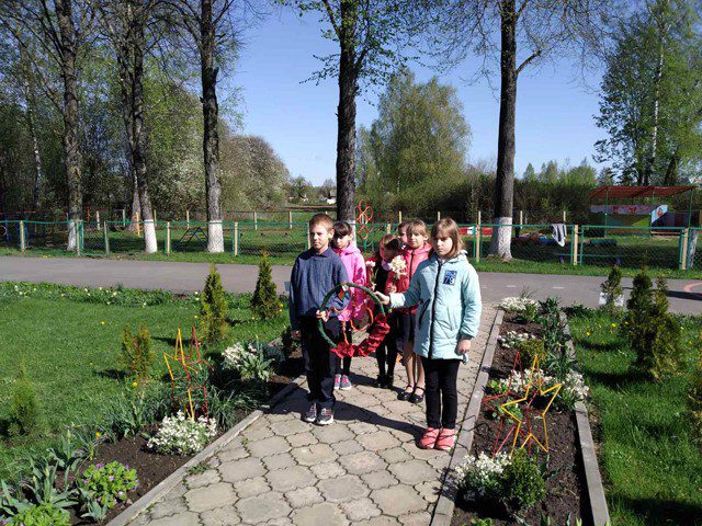 Также учащиеся и педагоги приняли активное участие в районных этапах республиканских конкурсов «Венок славы», «Цветы Победы». В рамках данных конкурсов были изготовлены гирлянда, венок славы и 8 мая торжественно возложены к обелиску воинов Великой Отечественной войны в агрогородке Полошково.